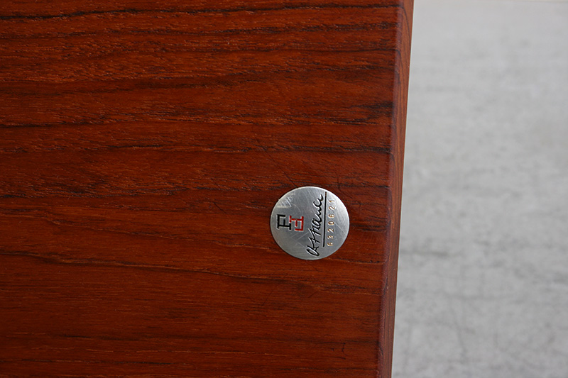 Der Couchtisch ist hier aus massive Teak verfügbar (nicht mehr hergestellt) und im großem Format FD 532. Mit Plakette des Herstellers.